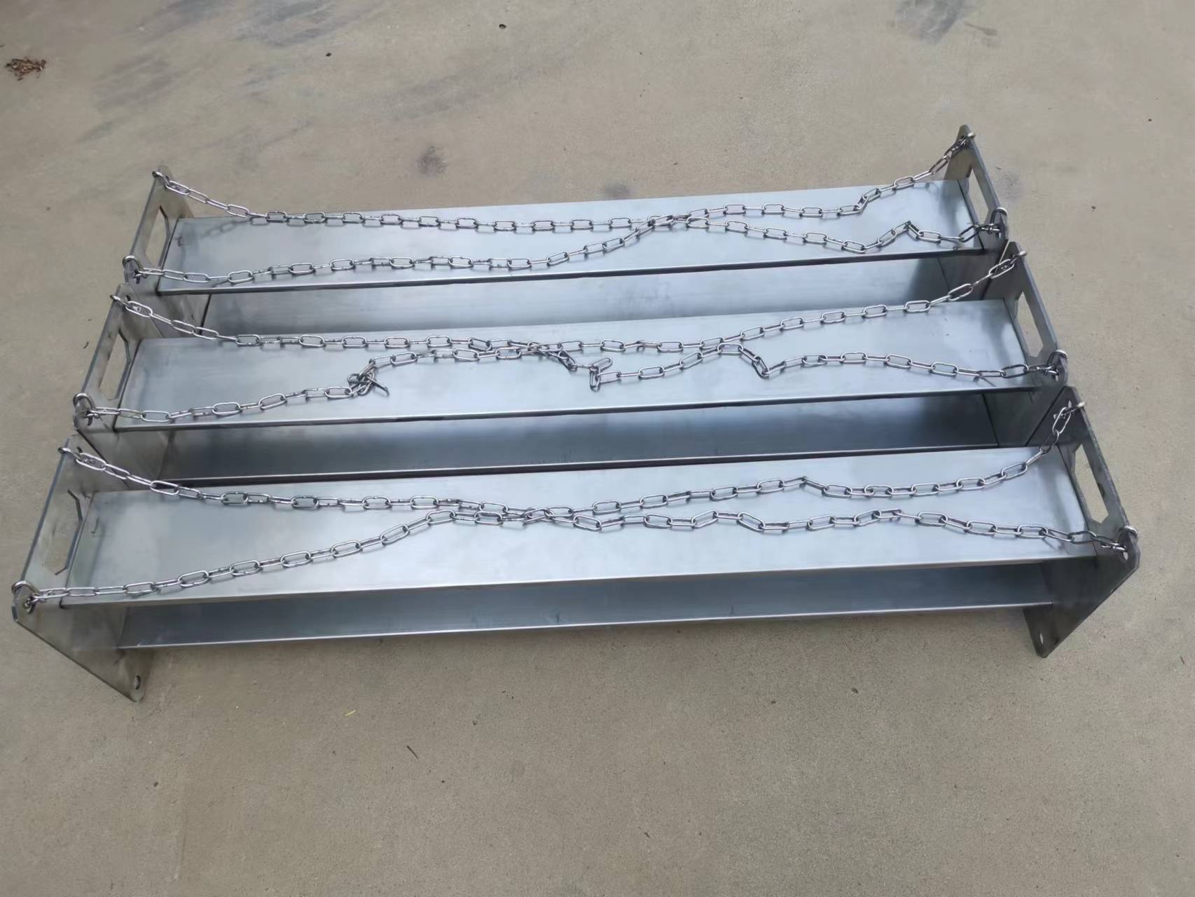 泥浆槽磁铁由本体和固定支架组成,全部采用不锈钢材质制造。本体分两层,每层的上下面都可以吸附铁屑。本体选用进口磁铁,具有吸附能力强、吸附面积大,使用寿命长等特点,是目前吸附能力最好的磁铁。安装方式是由四根500mm的不锈钢链条把泥浆槽磁铁两边的固定支架挂在泥浆中即可。